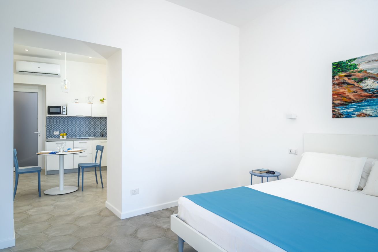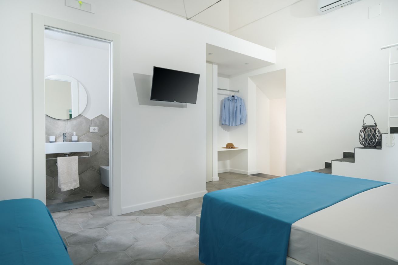 L’alloggio, fornito di balcone con vista panoramica sul Golfo di Napoli, è dotato di due camere da letto, ciascuna con Smart TV, aria condizionata, cucina e bagno, frigorifero, piano cottura a induzione, microonde, macchina per il caffè, stoviglie, lavatrice, scopa elettrica, biancheria da letto e da bagno, set per le pulizie, armadi a vista, asciugacapelli.
